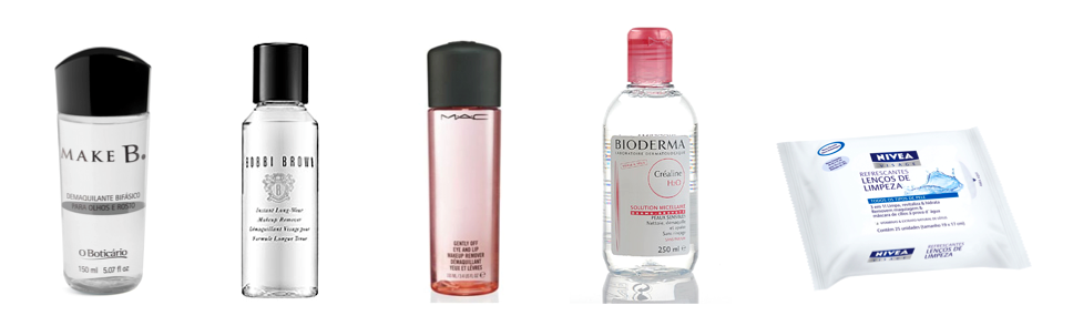 Algumas opções de demaquilante: