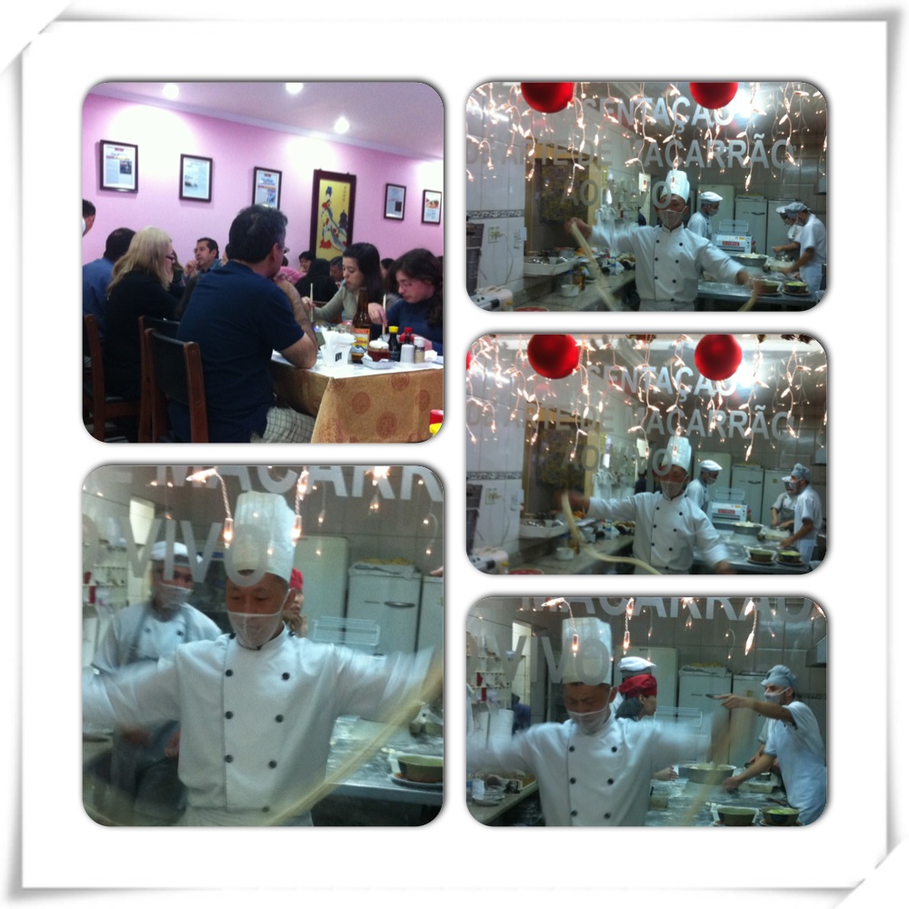 Tem um motivo: a massa é feita na hora! Tem um vidro onde você pode ver um chinês fazendo a sua massa e a transformando, quase que milagrosamente, em fios de macarrão! Tem vários vídeos no Youtube mostrando o processo. Posto um aqui para vocês verem que incrível é!